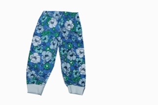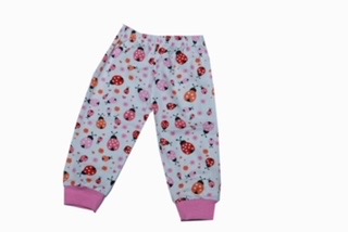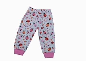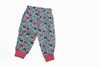The image shows a pair of children’s pajama pants. The pants are Various colorful all-over print featuring red, navy blue, and green elements—such as butterflies, flowers, and leaves. The waistband is elastic, and the cuffs at the ankles are in Various color made from a ribbed fabric. The design and size indicate it’s meant for toddlers or young children.