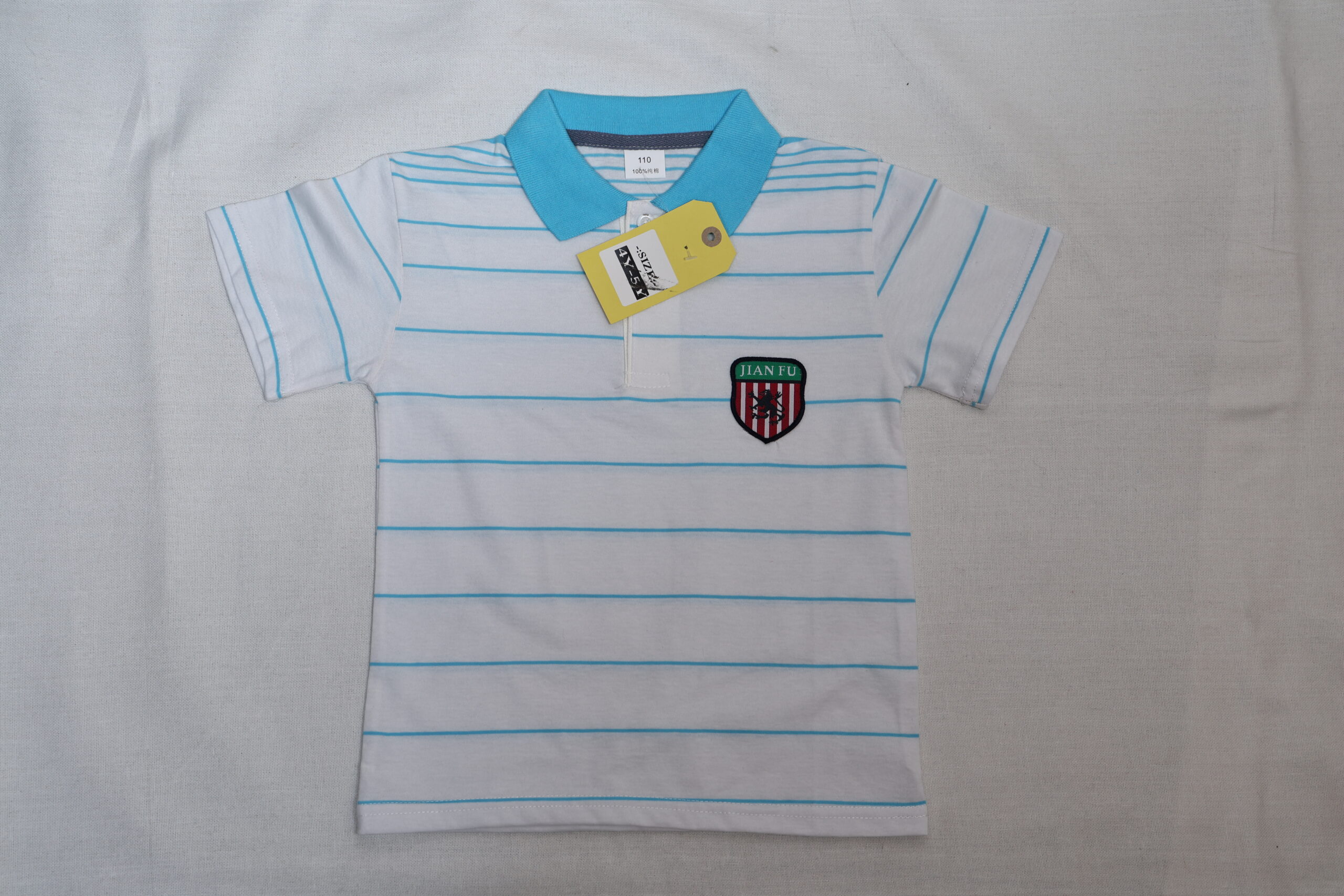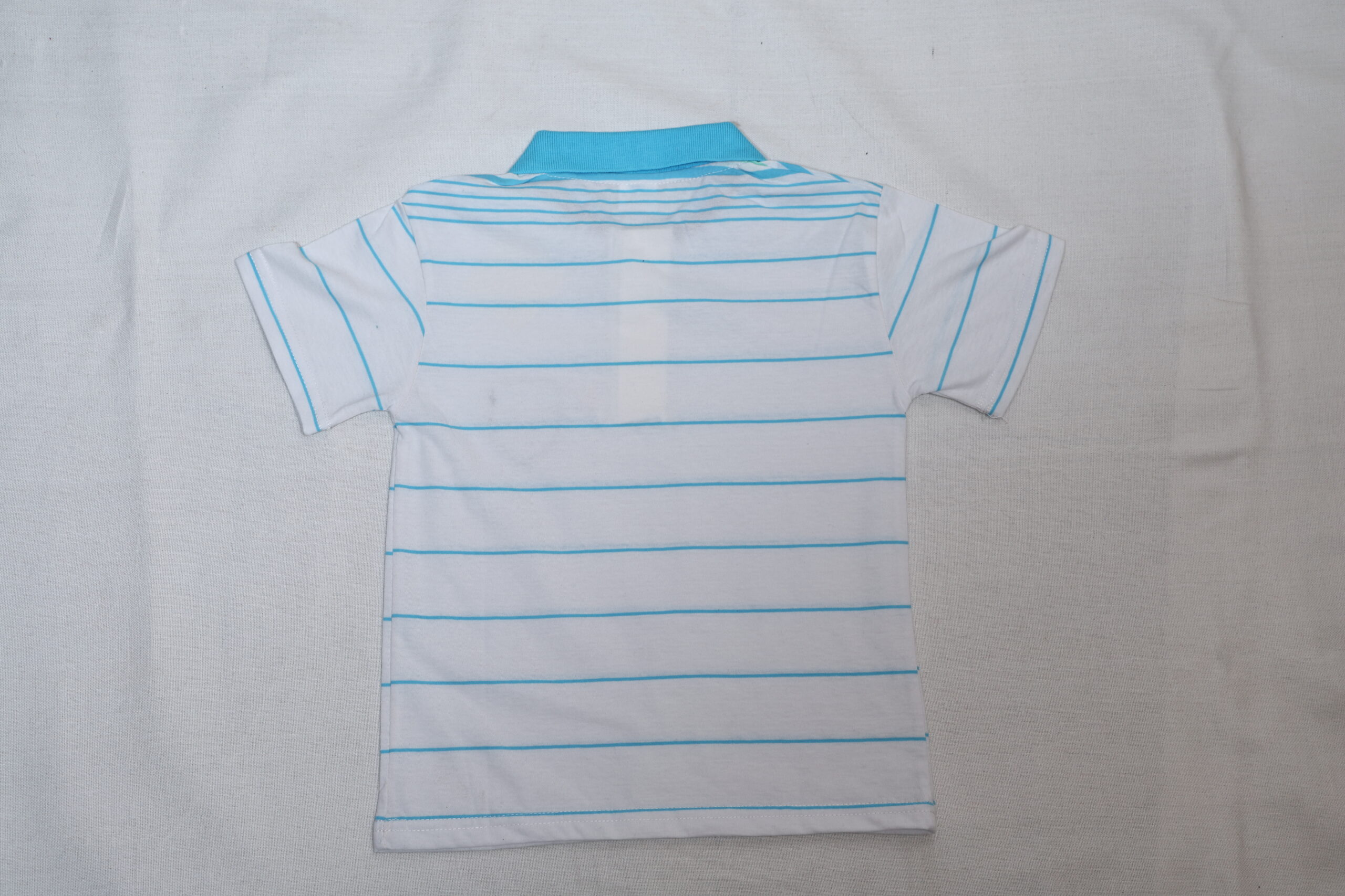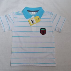 • Introducing a stylish and comfortable polo shirt designed for young boys, featuring a classic white and blue striped pattern.