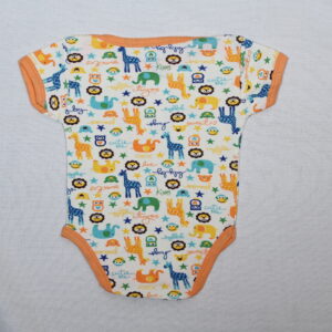 - This charming baby bodysuit features an adorable design showcasing playful giraffes and elephants, perfect for your little one.