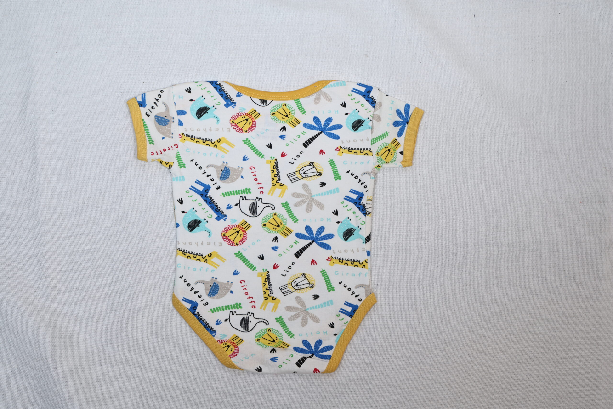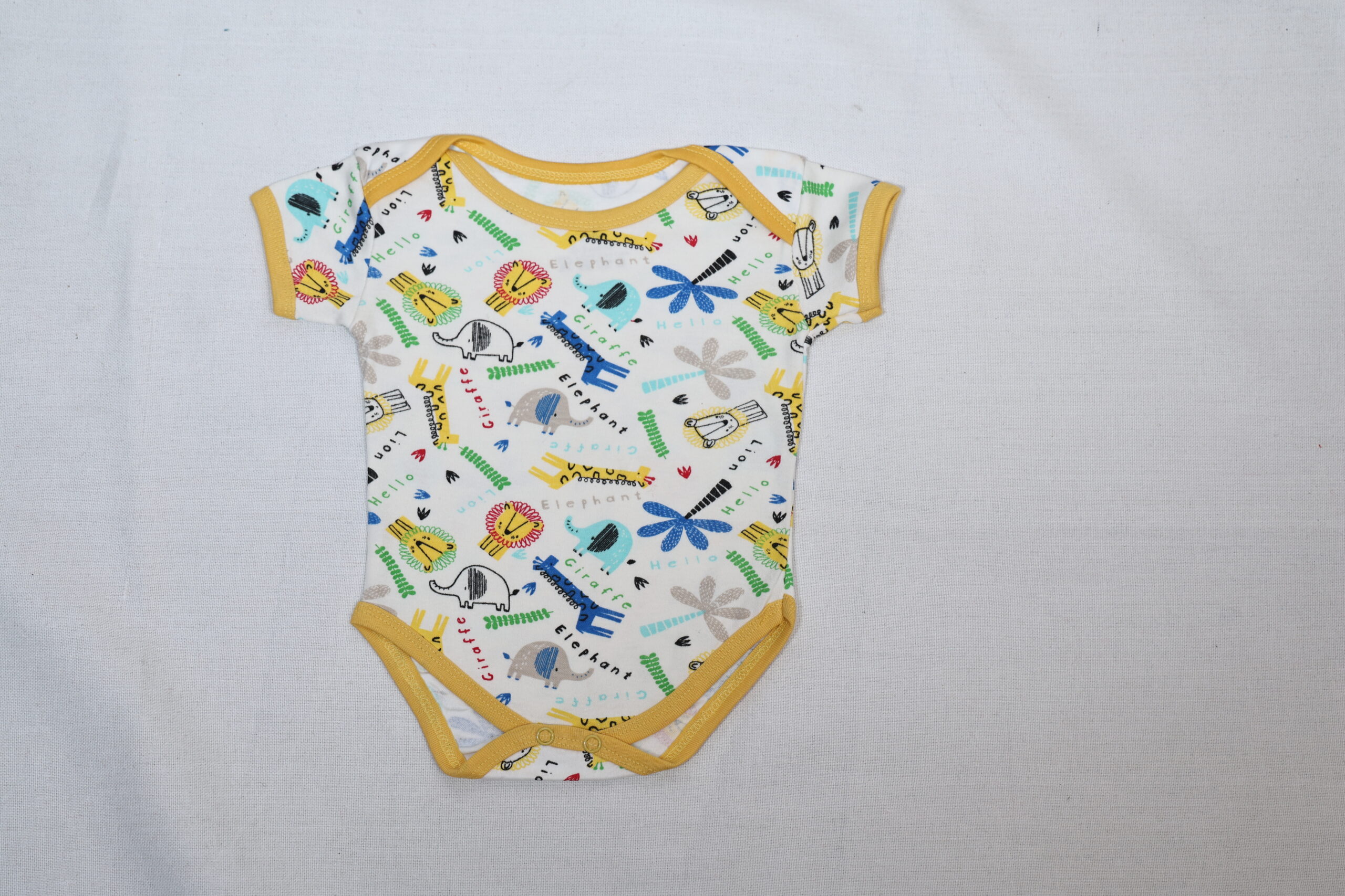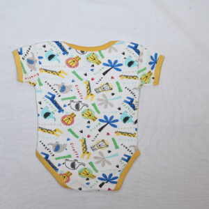 - This charming baby bodysuit features an adorable design showcasing playful giraffes and elephants, perfect for your little one.