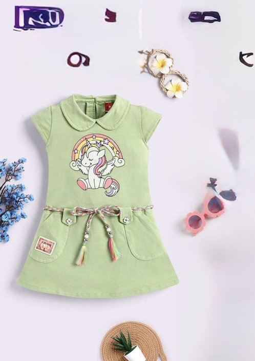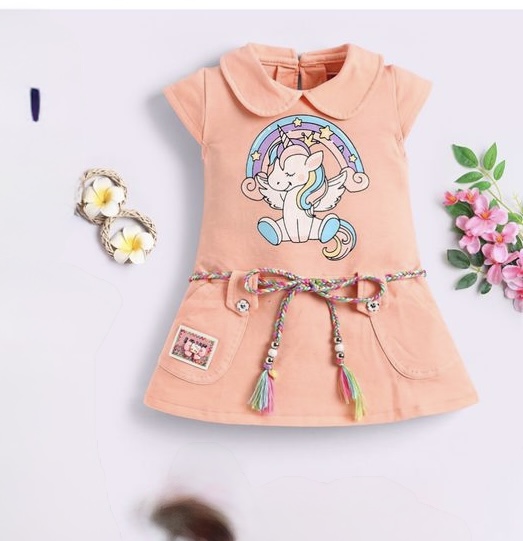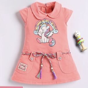 a pop of playful charm to your little one’s wardrobe with these adorable unicorn-themed dresses! Made from soft, breathable Looper fabric, these dresses are perfect for casual outings, playdates, or birthday parties. Featuring a cheerful unicorn print with a rainbow backdrop, the dresses also include charming details like:
